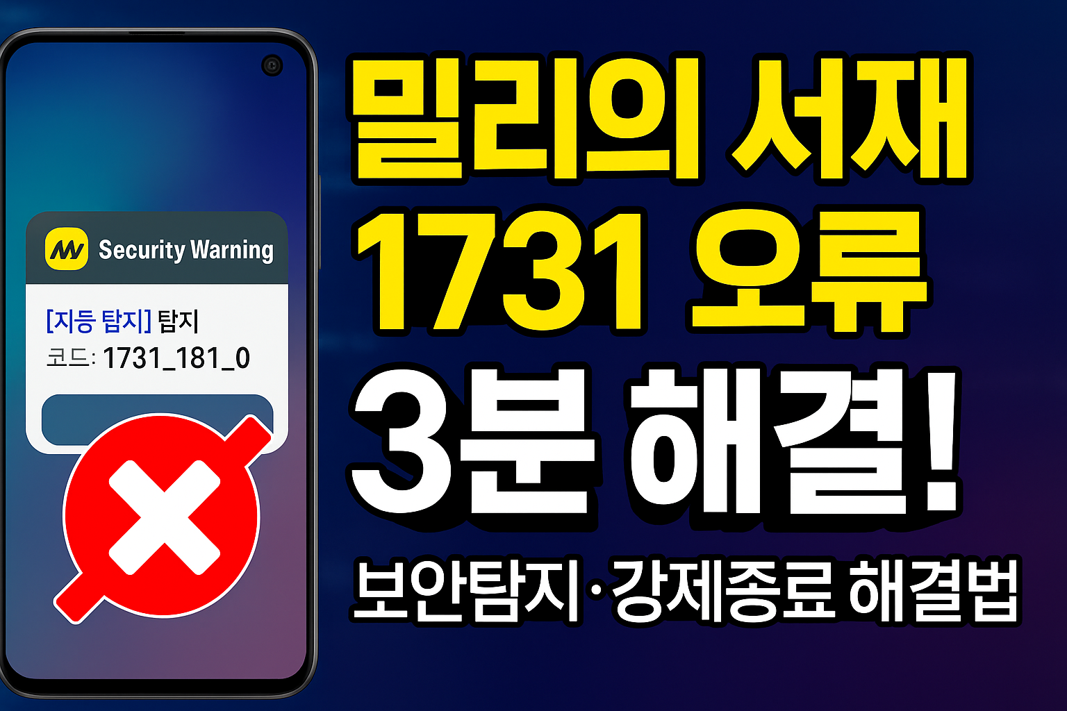 밀리의 서재 앱의 1731 오류는 앱 차단 설정 또는 보안 앱 충돌 문제가 가장 많은 원인이며, 저처럼 간단한 설정 해제로 해결되는 경우도 많습니다.